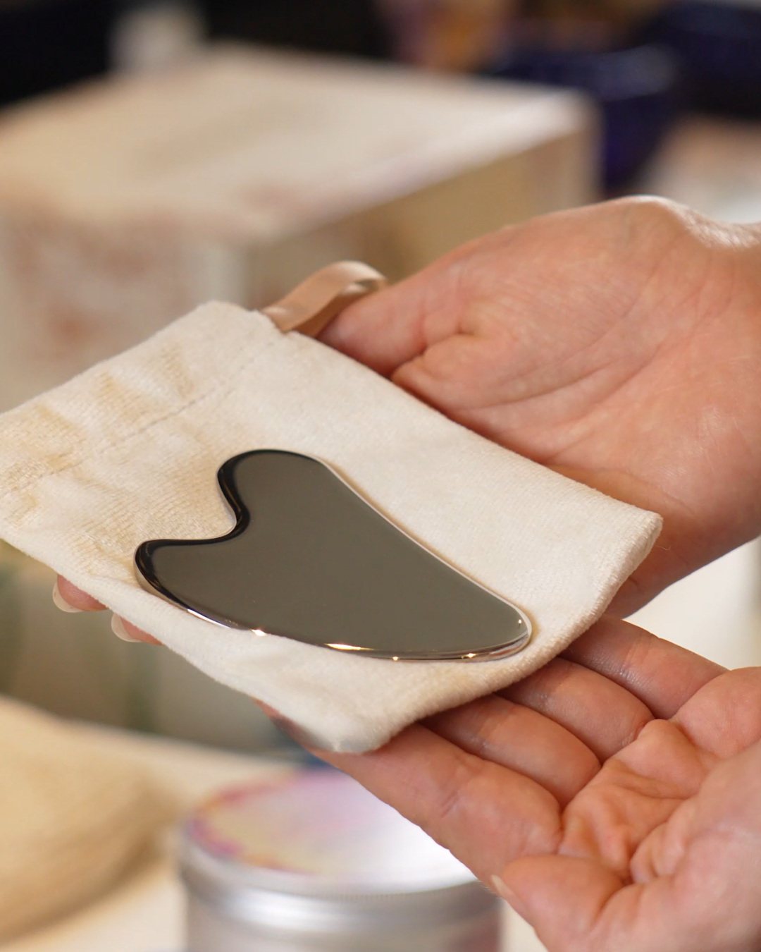 Aplica unas gotas de tu aceite o sérum favorito, desliza suavemente la Gua Sha sobre la piel en movimientos ascendentes, y disfruta de un ritual que revitaliza tu cuerpo y mente.